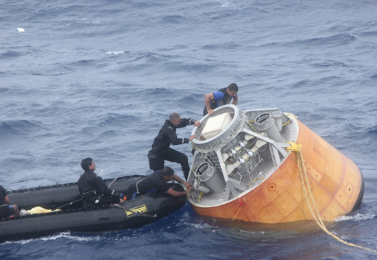 Splashdown and Retrieval of the CARE Crew Module by the Indian Coast Guards.