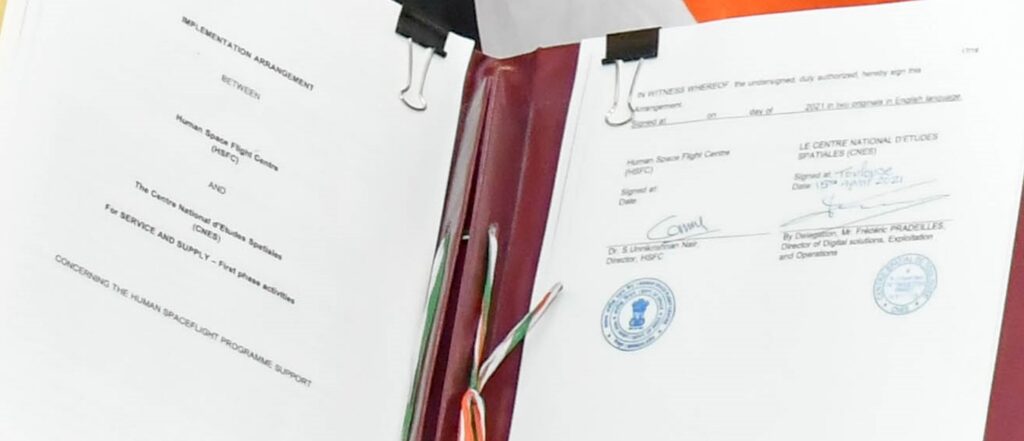 Human Space Flight Center (HSFC) of ISRO and CNES, French Space Agency sign Space Cooperation Agreement on April 15, 2021.